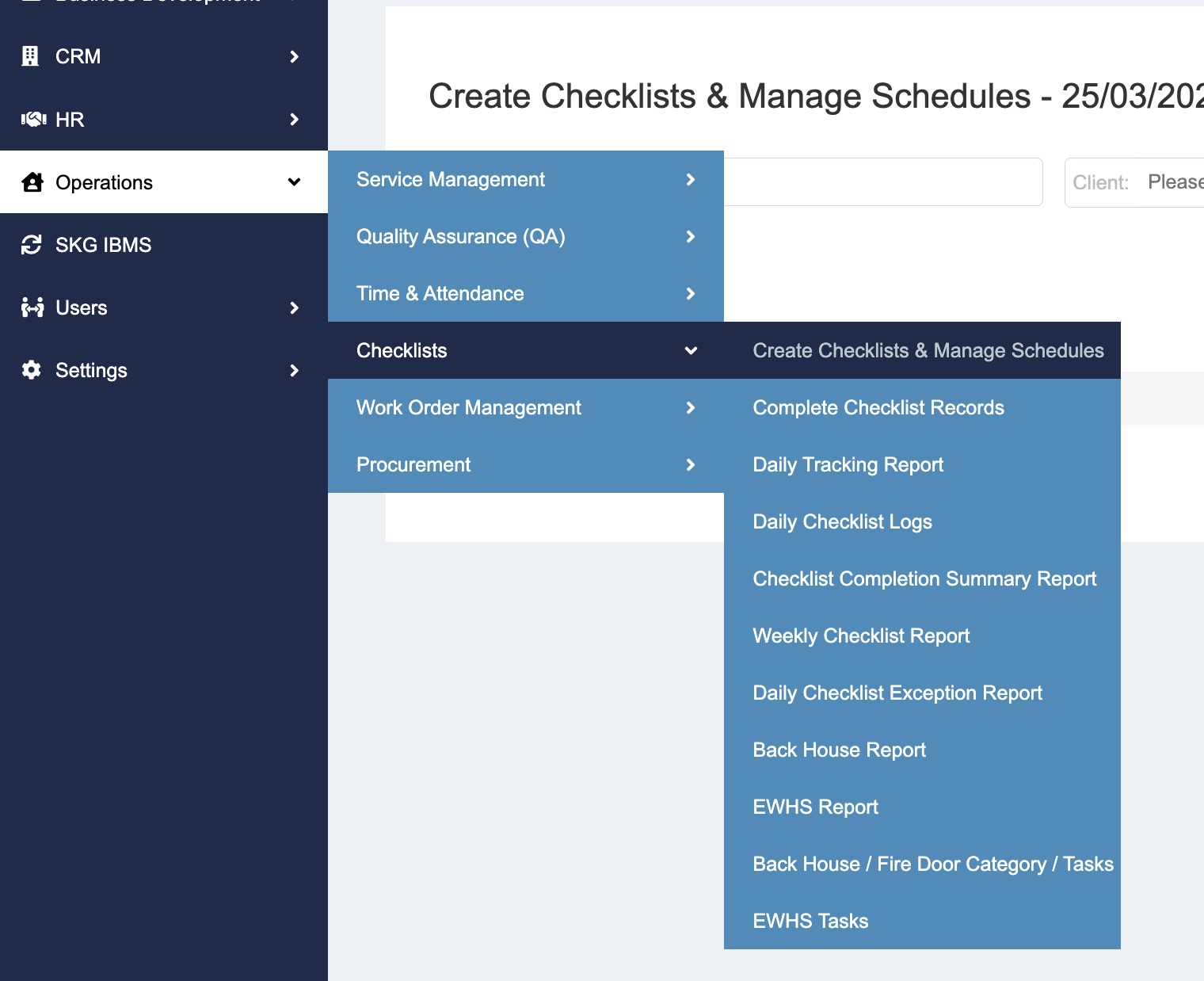 1. Click Operation > Checklists > Create Checklists & Manage Schedules