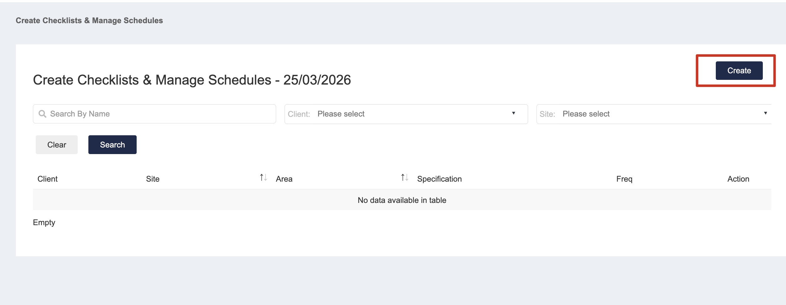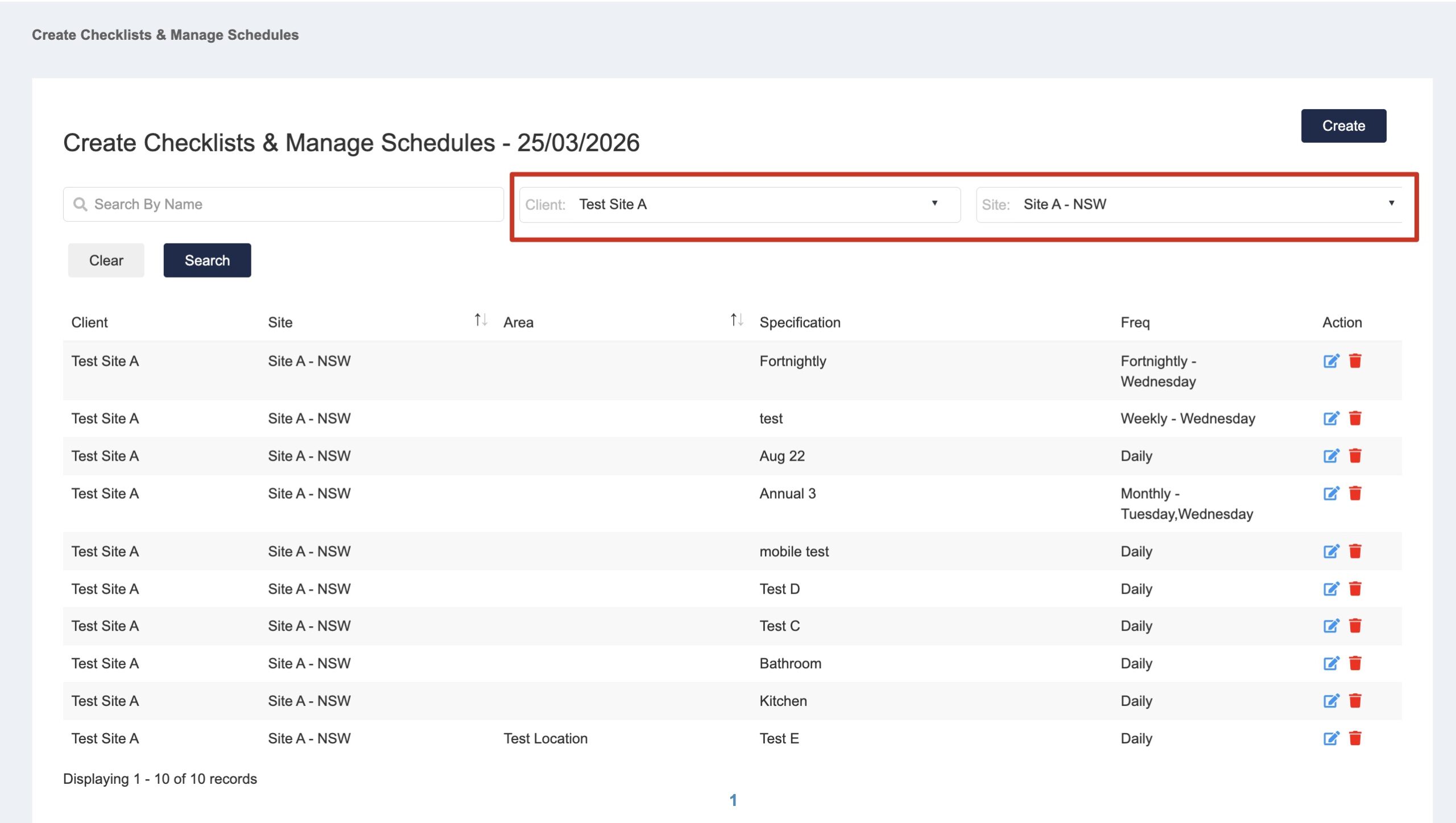4. Once the Checklist item is created, you can search by client/site to search for all checklist items created.