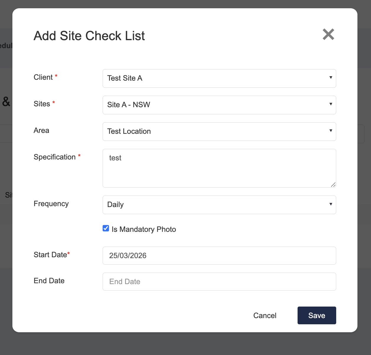 Tick “Is Mandatory Photo” if completion of checklist needs evidence.