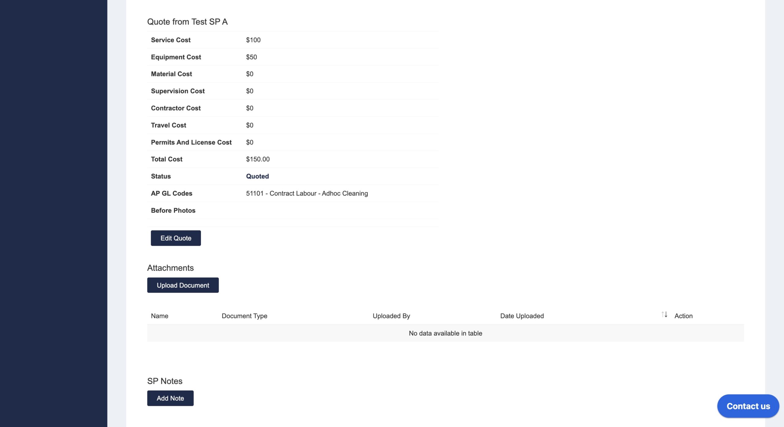 3. Once the quote is added, it will be sent to the admin portal and wait for approval.