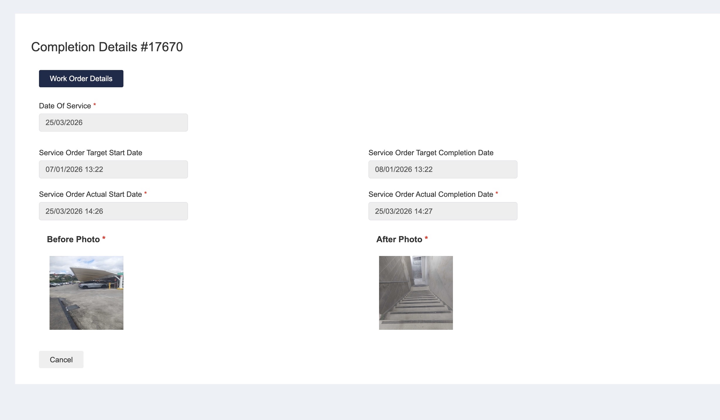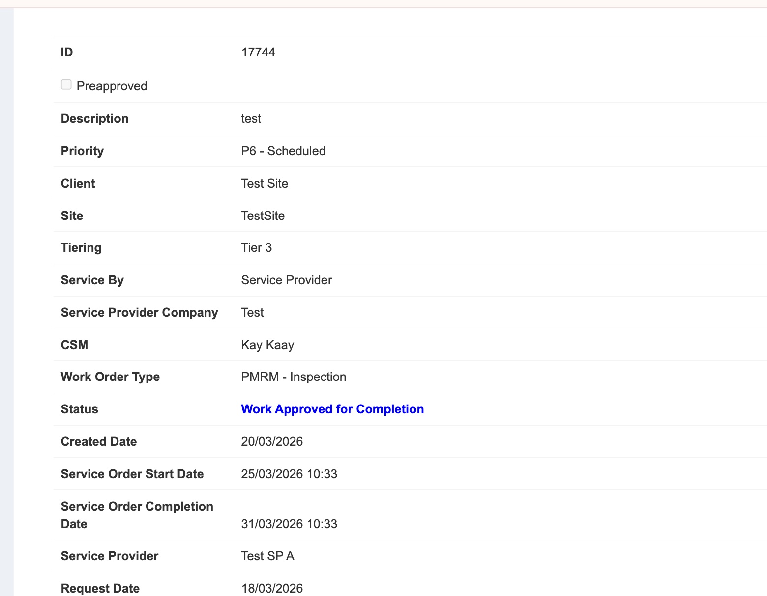 4. If the quote is accepted and a service order created, the status of the WO will be changed to “Work Approved for Completion”.