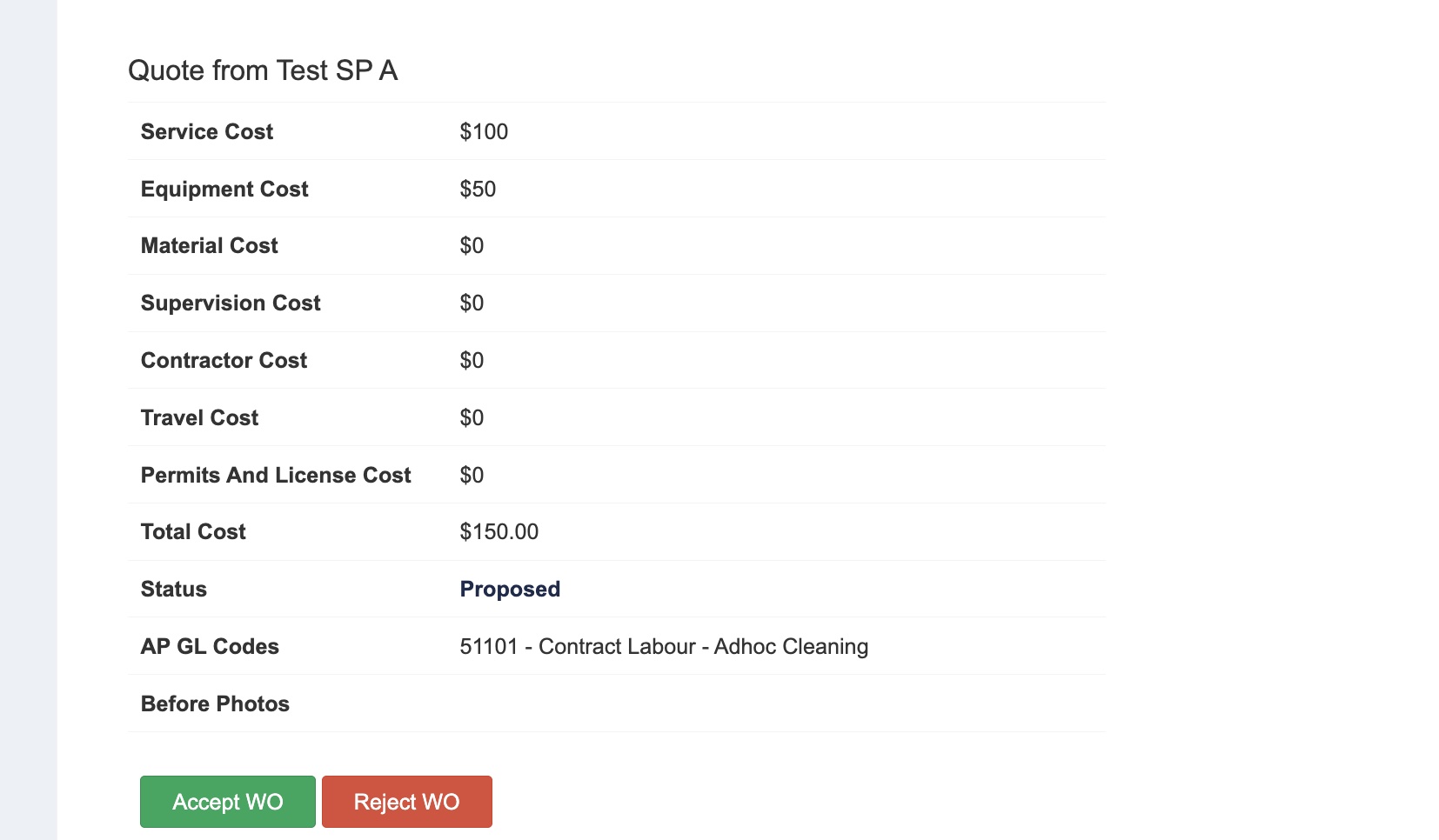 1. When a new quote is requested for a WO by the admin, SP Managers will receive an email with the link to the WO.