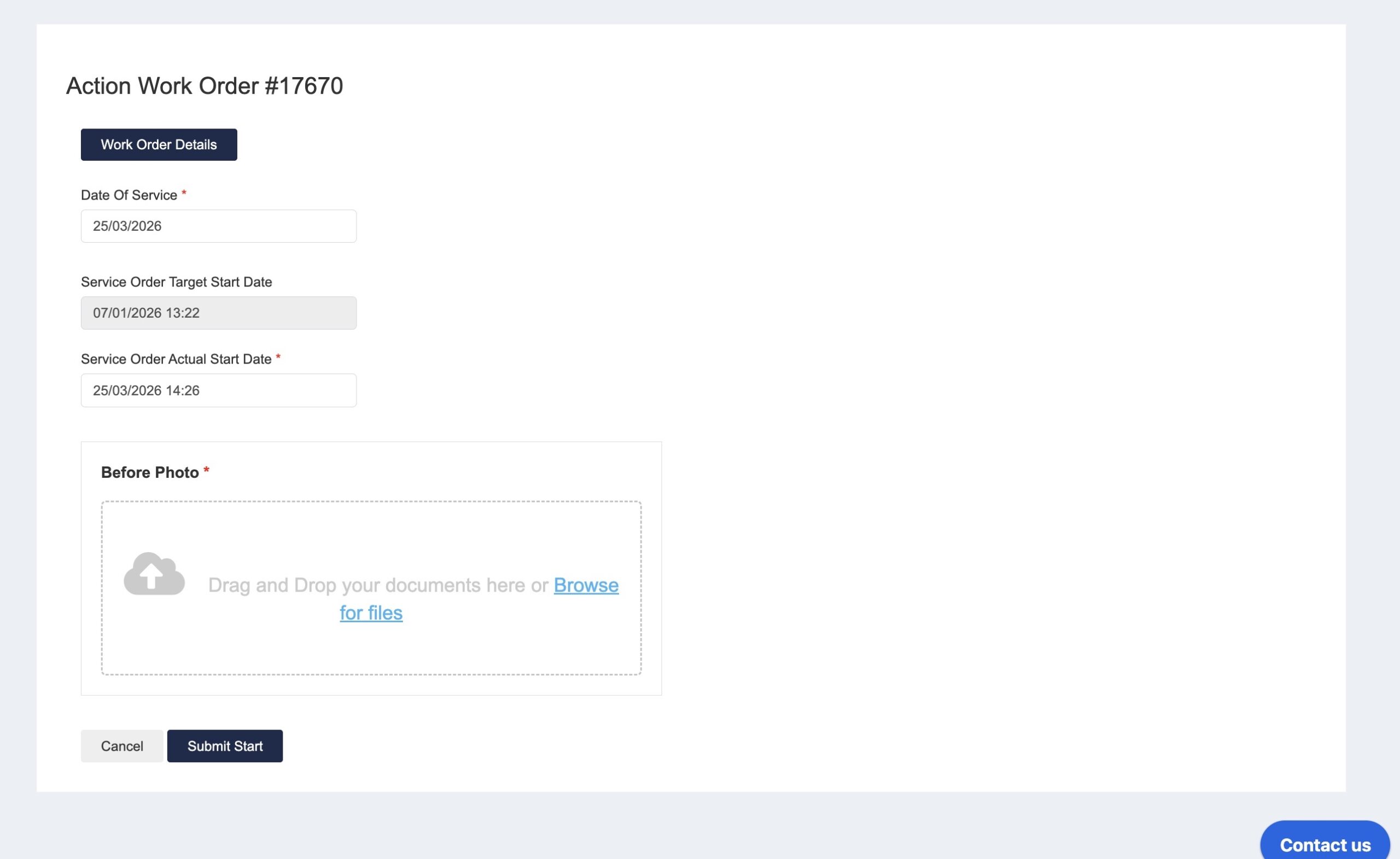 Service Providers can manage and action Work Orders (WO) in the SP portal.